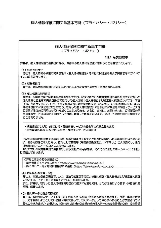 姫路市 お客様本位の業務運営方針(FD宣言) 髙濵自動車